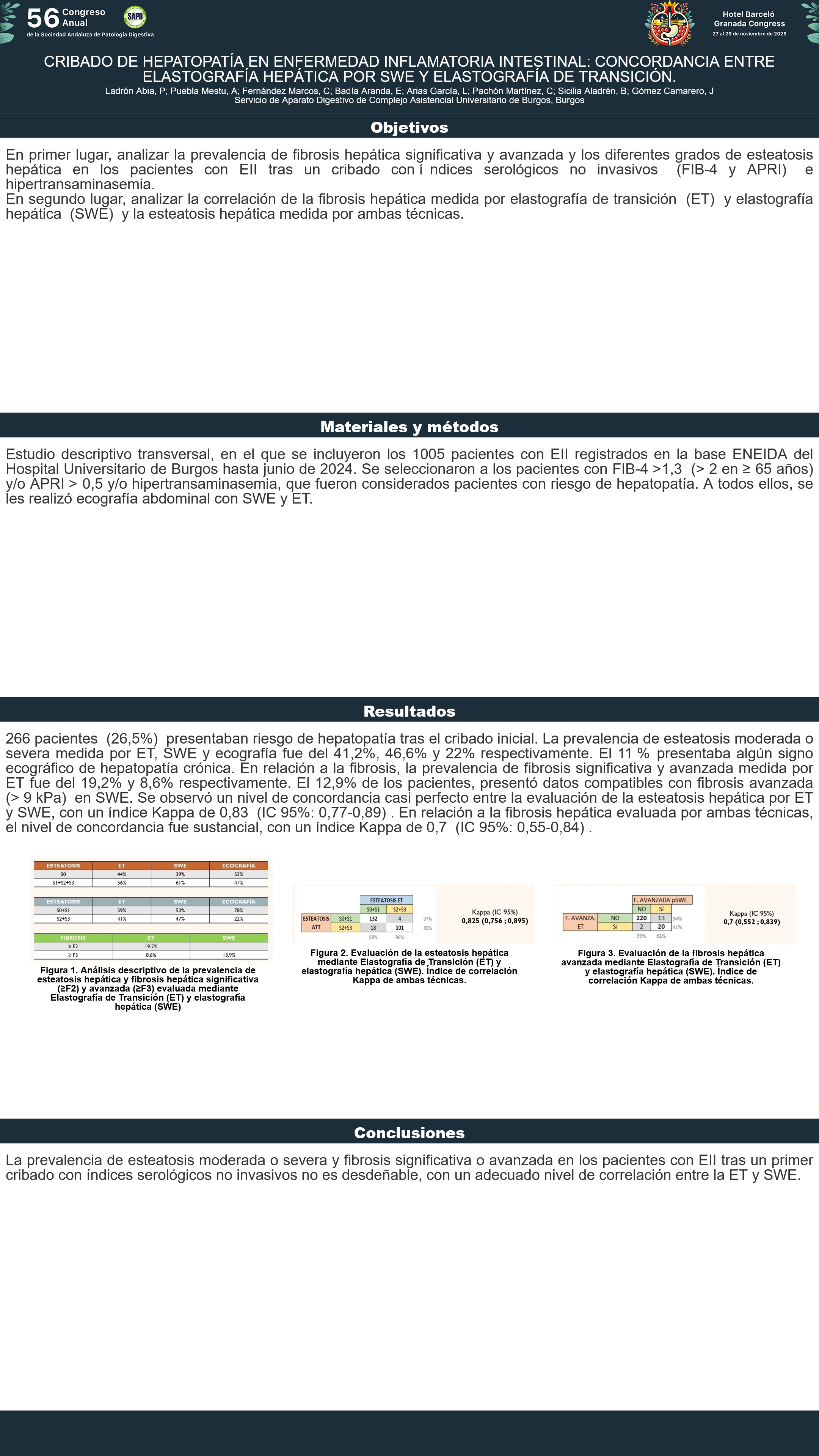[CP-207] CRIBADO DE HEPATOPATÍA EN ENFERMEDAD INFLAMATORIA INTESTINAL: CONCORDANCIA ENTRE ELASTOGRAFÍA HEPÁTICA POR SWE Y ELASTOGRAFÍA DE TRANSICIÓN.