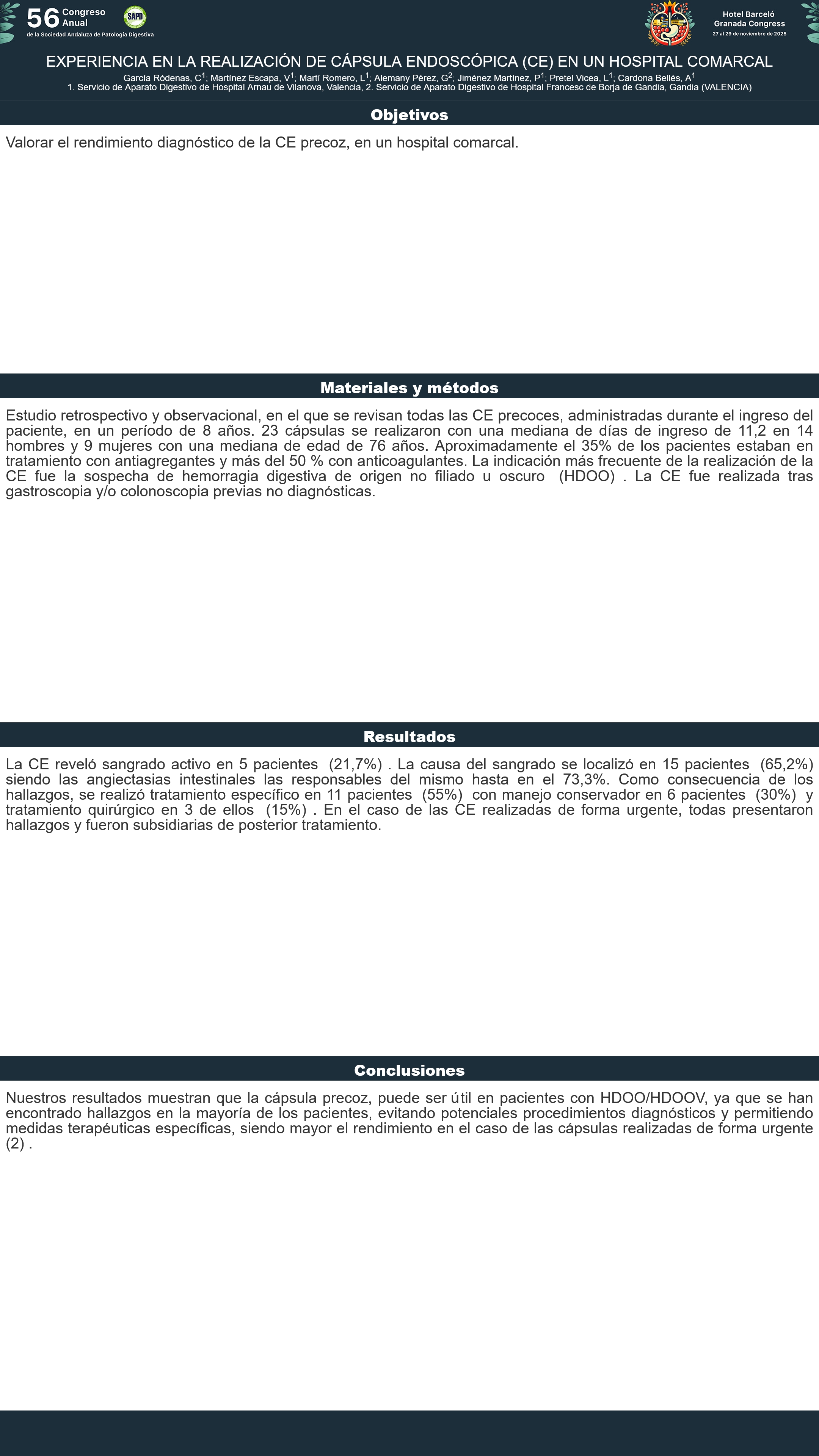 [CP-001] EXPERIENCIA EN LA REALIZACIÓN DE CÁPSULA ENDOSCÓPICA (CE) EN UN HOSPITAL COMARCAL