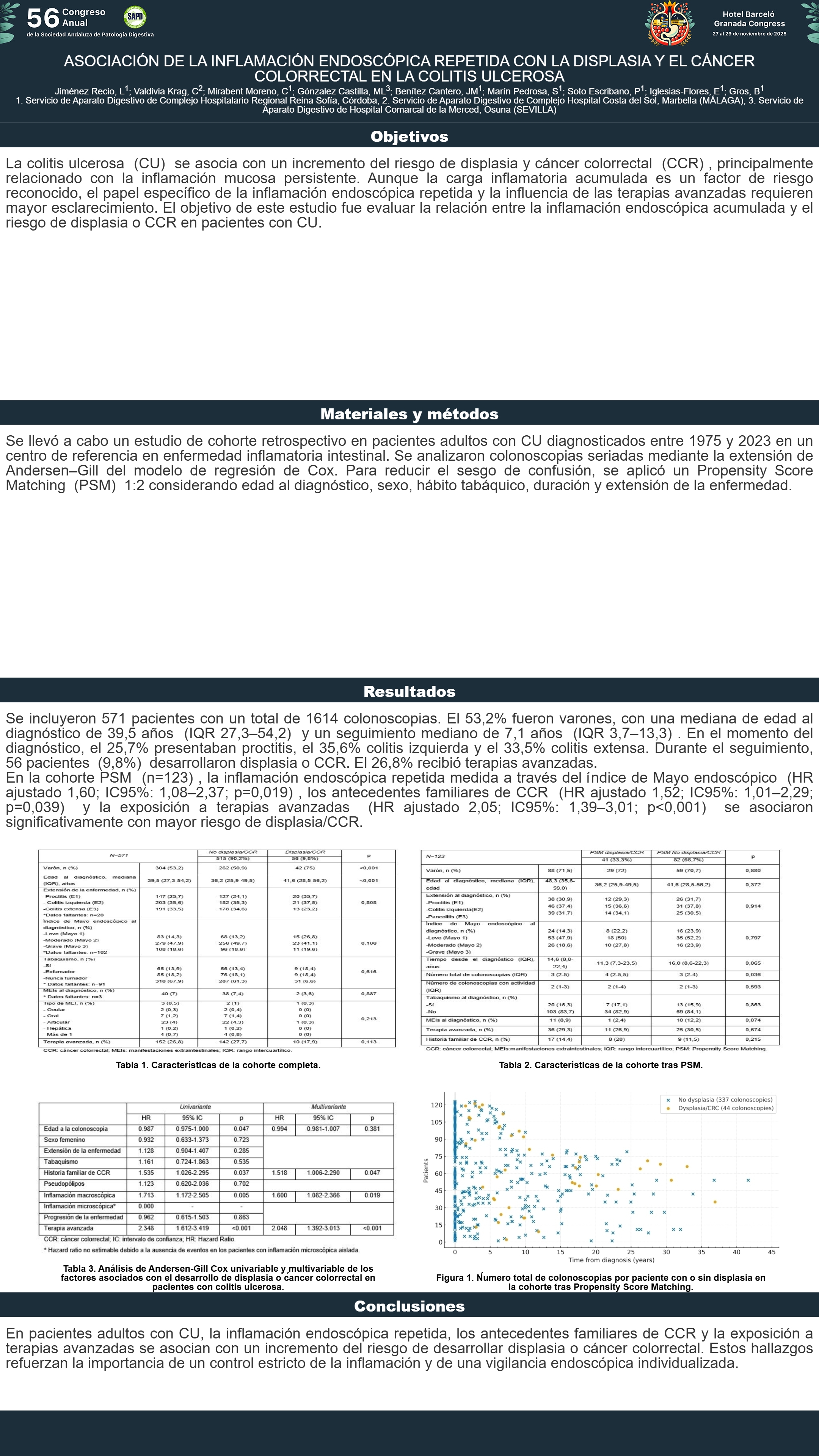 [CO-24] ASOCIACIÓN DE LA INFLAMACIÓN ENDOSCÓPICA REPETIDA CON LA DISPLASIA Y EL CÁNCER COLORRECTAL EN LA COLITIS ULCEROSA