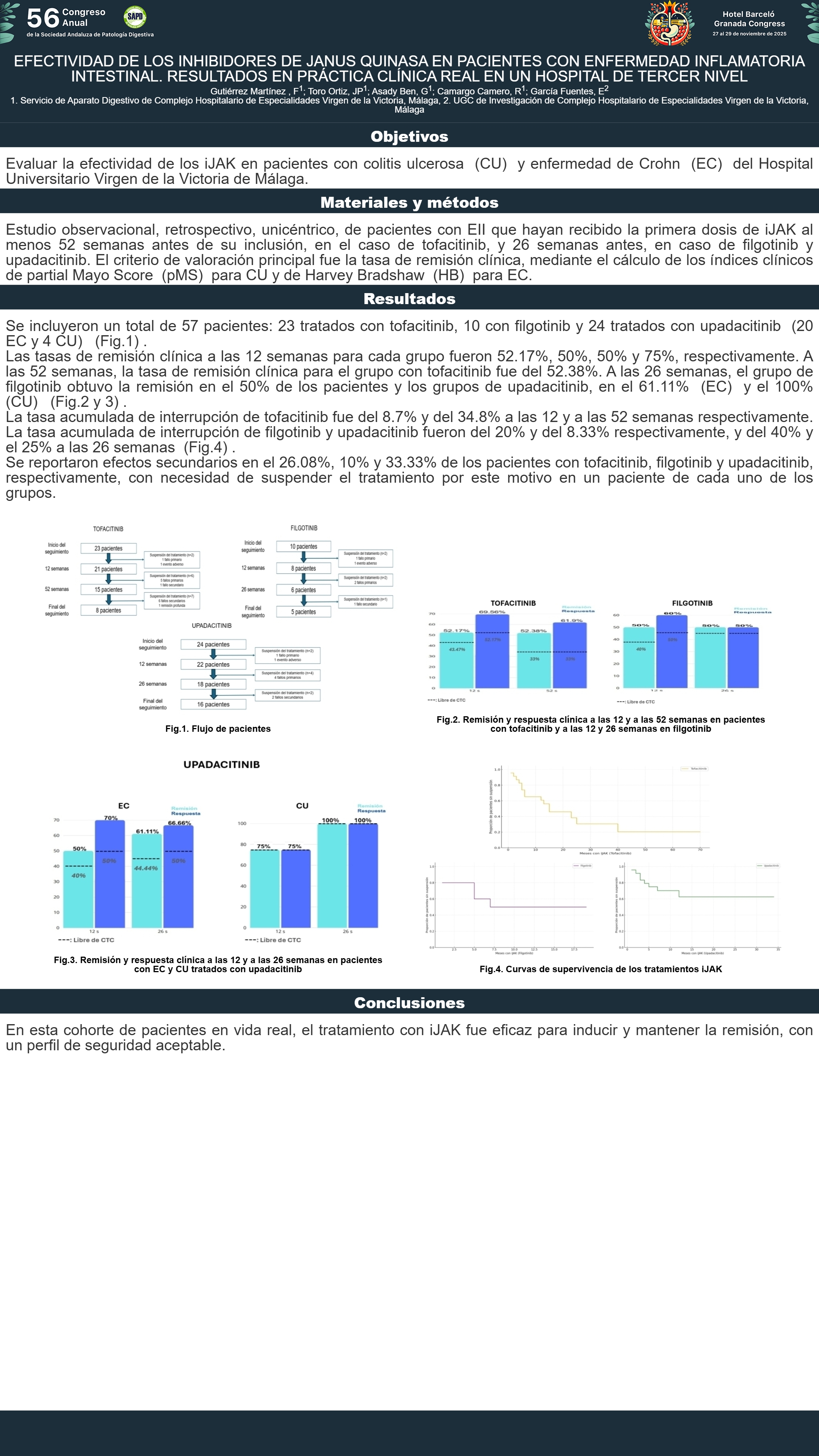 [CP-209] EFECTIVIDAD DE LOS INHIBIDORES DE JANUS QUINASA EN PACIENTES CON ENFERMEDAD INFLAMATORIA INTESTINAL. RESULTADOS EN PRÁCTICA CLÍNICA REAL EN UN HOSPITAL DE TERCER NIVEL