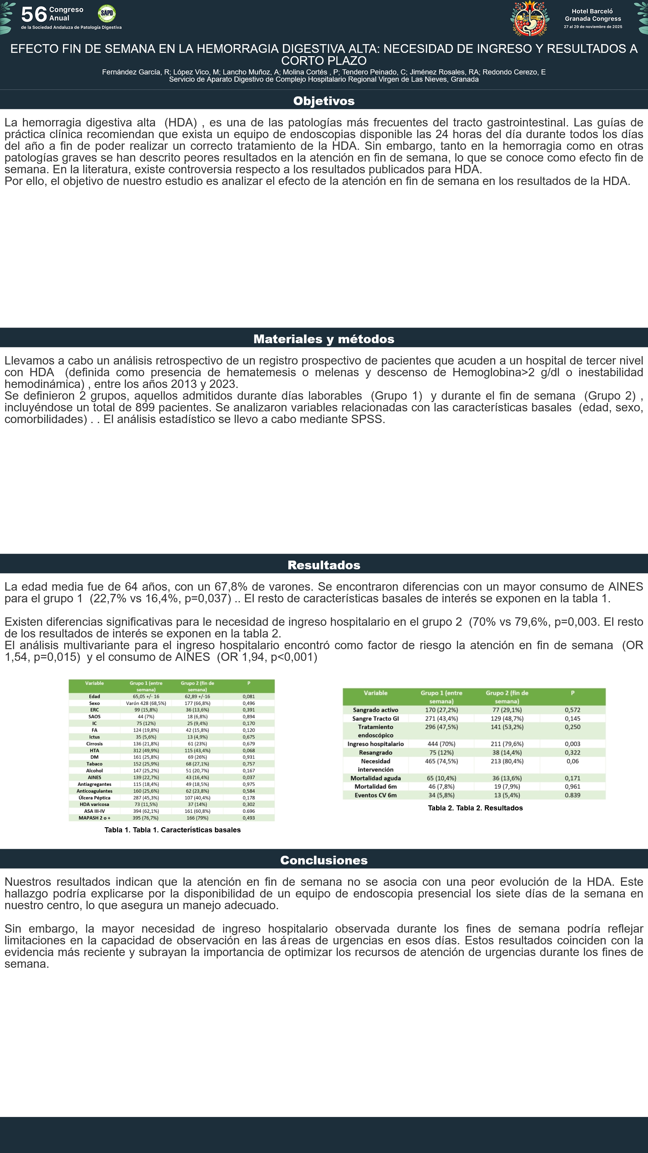 [CO-17] EFECTO FIN DE SEMANA EN LA HEMORRAGIA DIGESTIVA ALTA: NECESIDAD DE INGRESO Y RESULTADOS A CORTO PLAZO