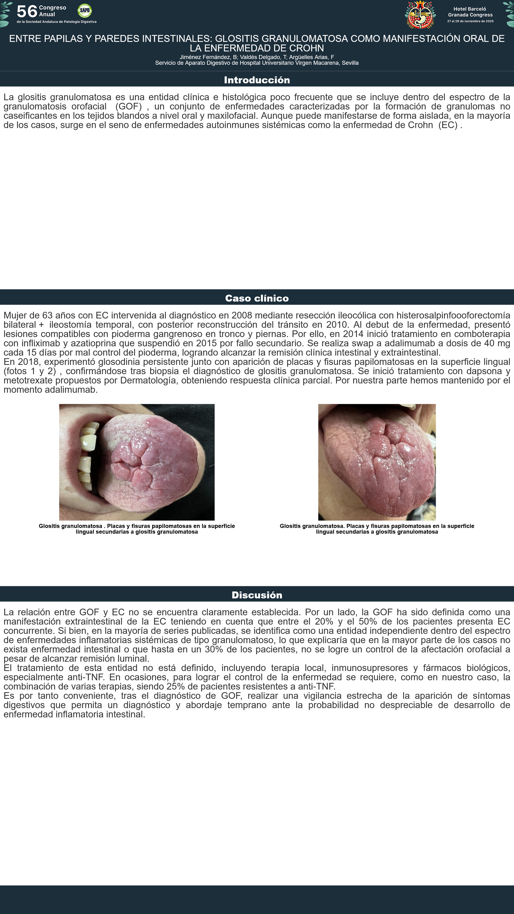 [CP-224] ENTRE PAPILAS Y PAREDES INTESTINALES: GLOSITIS GRANULOMATOSA COMO MANIFESTACIÓN ORAL DE LA ENFERMEDAD DE CROHN