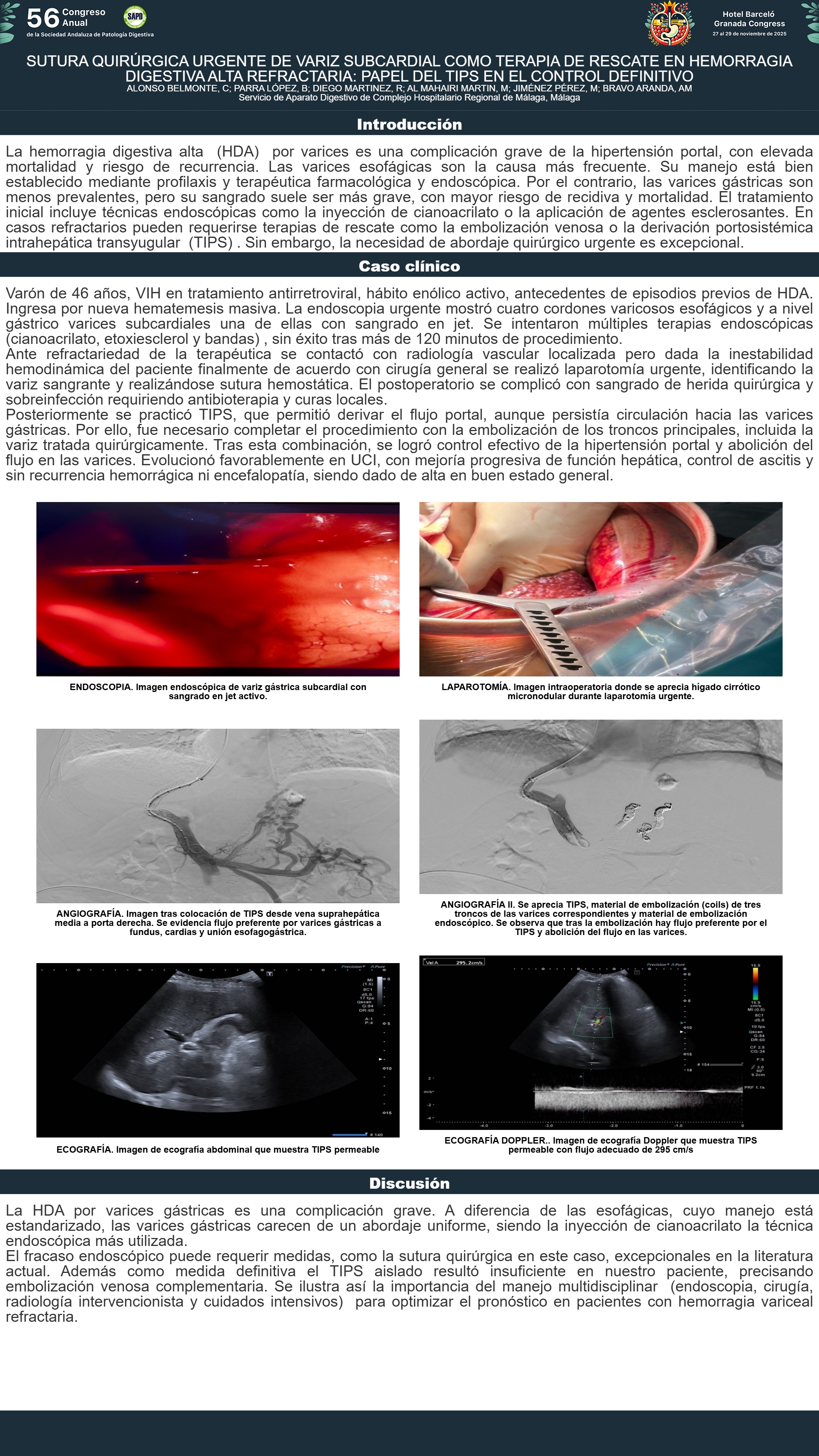 [CP-013] SUTURA QUIRÚRGICA URGENTE DE VARIZ SUBCARDIAL COMO TERAPIA DE RESCATE EN HEMORRAGIA DIGESTIVA ALTA REFRACTARIA: PAPEL DEL TIPS EN EL CONTROL DEFINITIVO