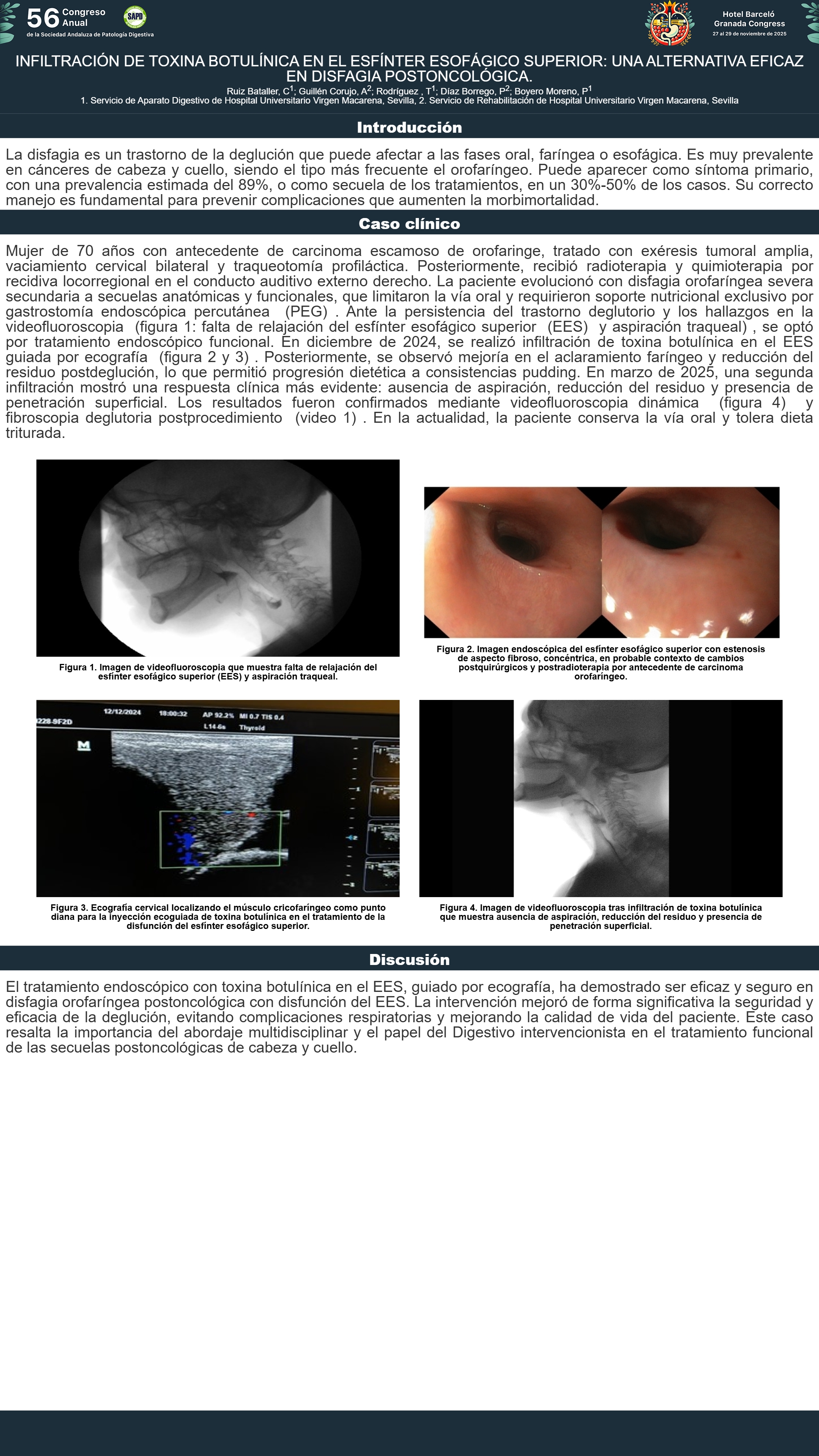 [CP-015] INFILTRACIÓN DE TOXINA BOTULÍNICA EN EL ESFÍNTER ESOFÁGICO SUPERIOR: UNA ALTERNATIVA EFICAZ EN DISFAGIA POSTONCOLÓGICA.