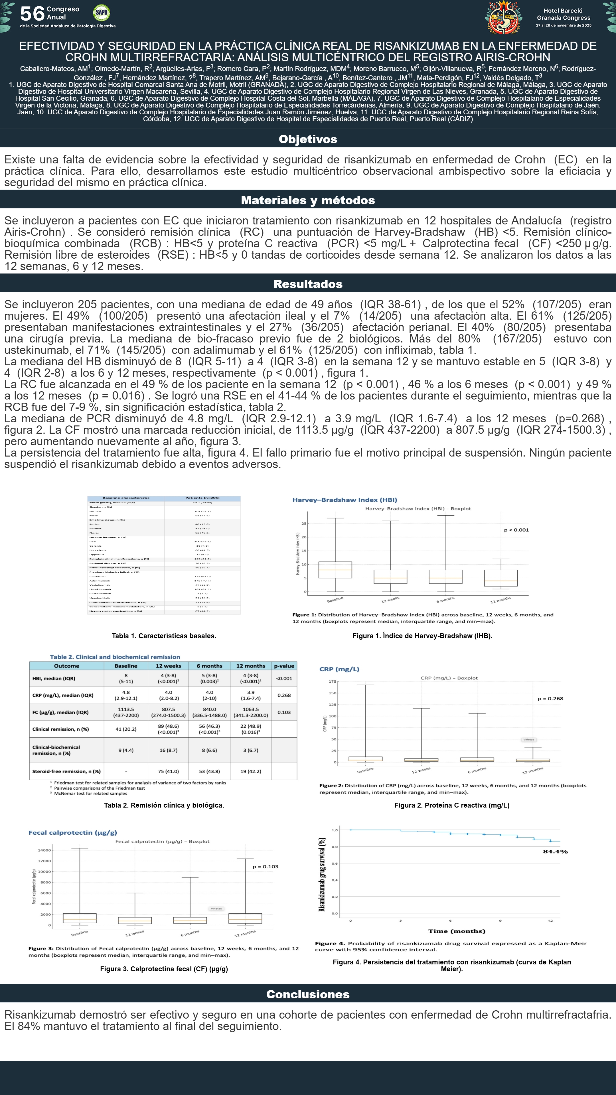 [CP-206] EFECTIVIDAD Y SEGURIDAD EN LA PRÁCTICA CLÍNICA REAL DE RISANKIZUMAB EN LA ENFERMEDAD DE CROHN MULTIRREFRACTARIA: ANÁLISIS MULTICÉNTRICO DEL REGISTRO AIRIS-CROHN