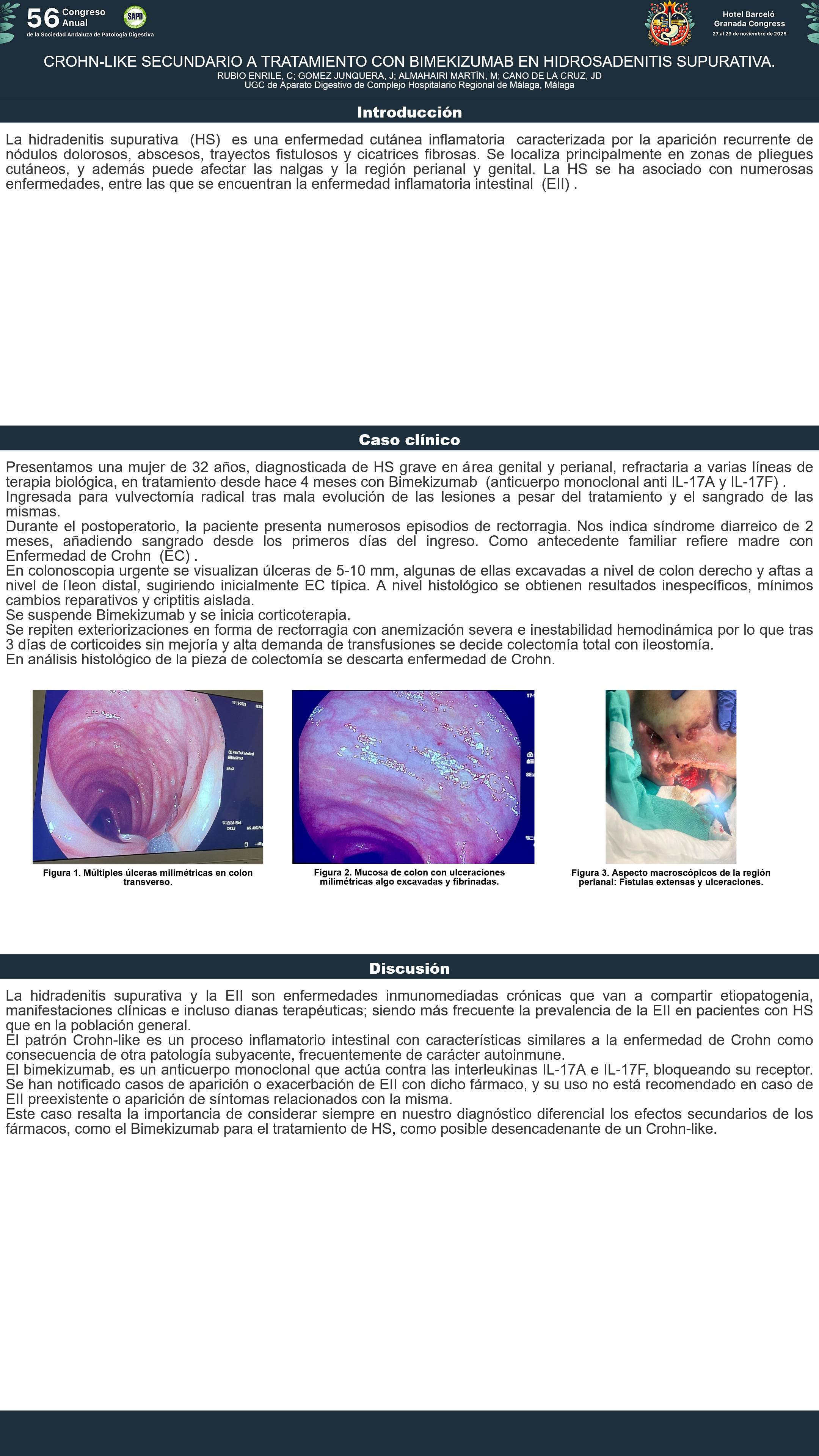 [CP-237] CROHN-LIKE SECUNDARIO A TRATAMIENTO CON BIMEKIZUMAB EN HIDROSADENITIS SUPURATIVA.