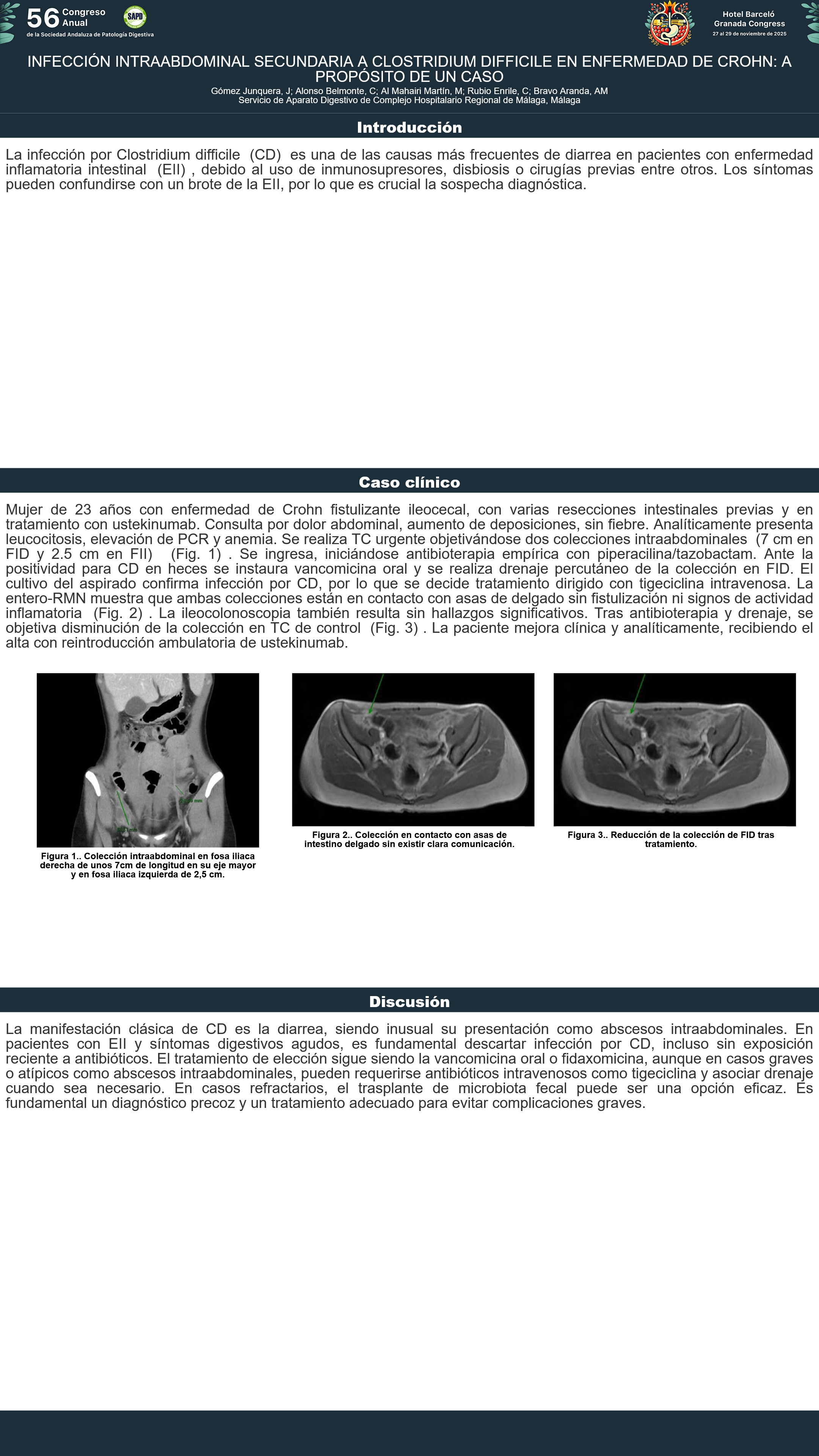 [CP-230] INFECCIÓN INTRAABDOMINAL SECUNDARIA A CLOSTRIDIUM DIFFICILE EN ENFERMEDAD DE CROHN: A PROPÓSITO DE UN CASO