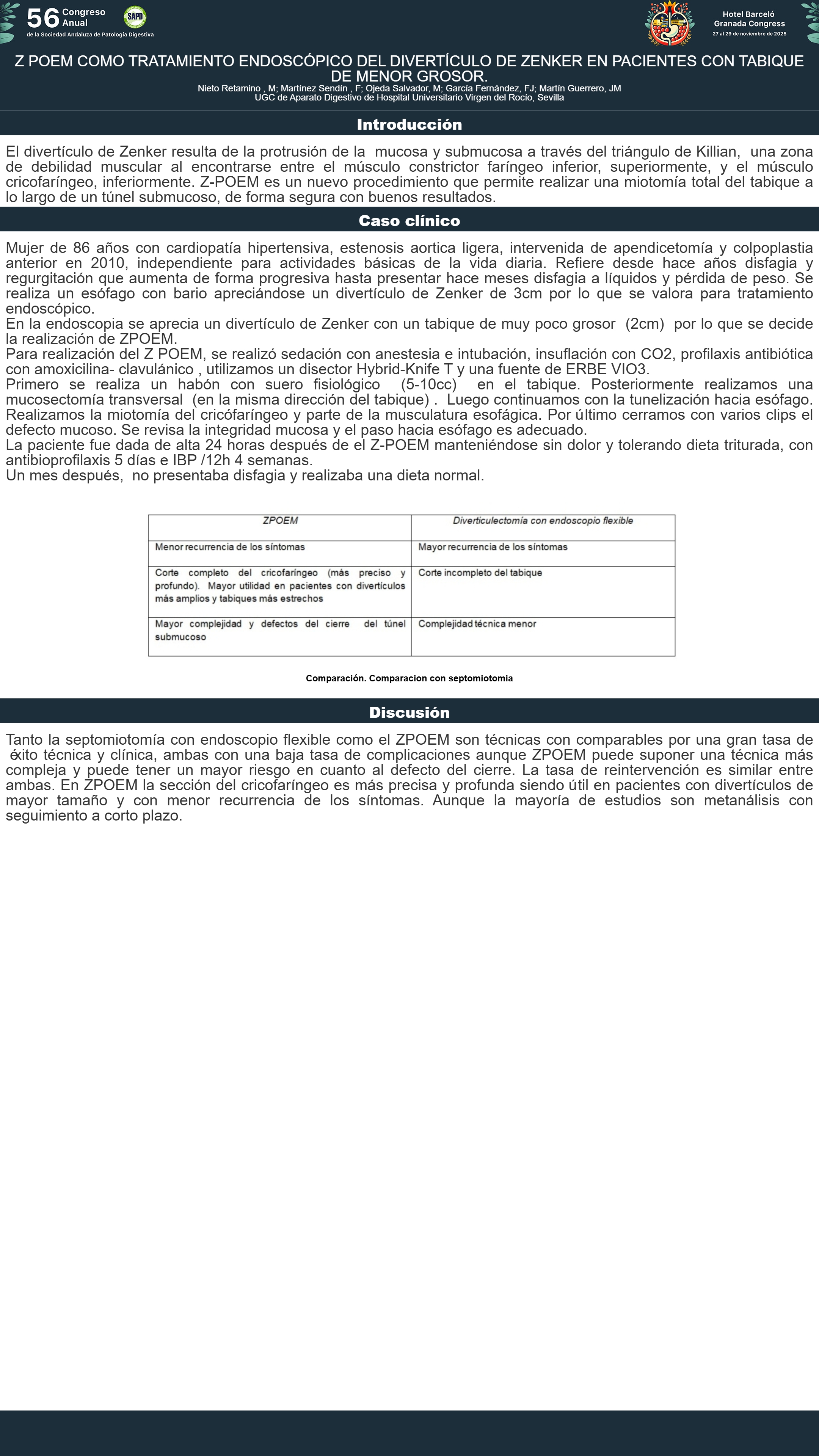 [VF-02] Z POEM COMO TRATAMIENTO ENDOSCÓPICO DEL DIVERTÍCULO DE ZENKER EN PACIENTES CON TABIQUE DE MENOR GROSOR.