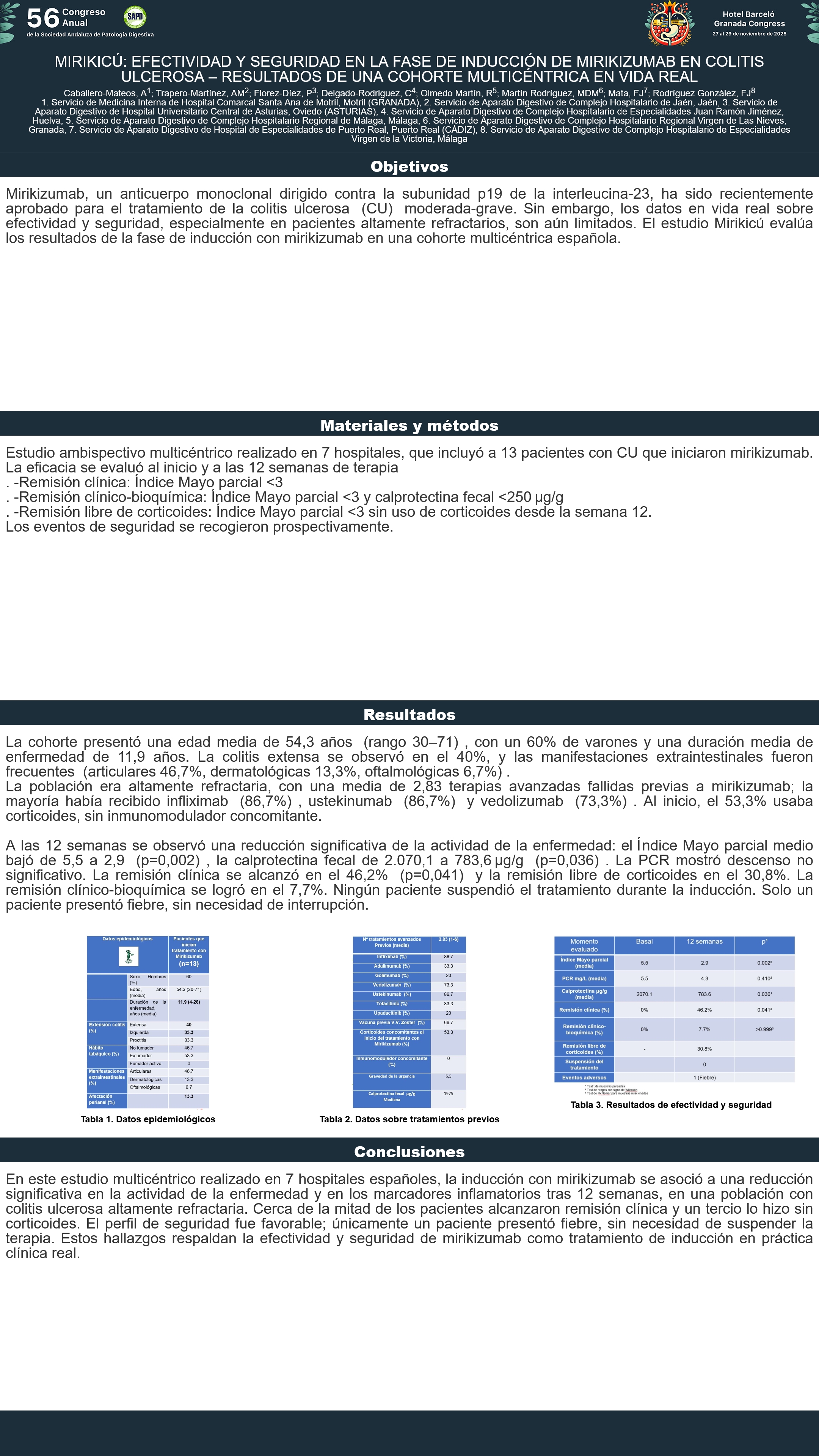 [CP-212] MIRIKICÚ: EFECTIVIDAD Y SEGURIDAD EN LA FASE DE INDUCCIÓN DE MIRIKIZUMAB EN COLITIS ULCEROSA – RESULTADOS DE UNA COHORTE MULTICÉNTRICA EN VIDA REAL