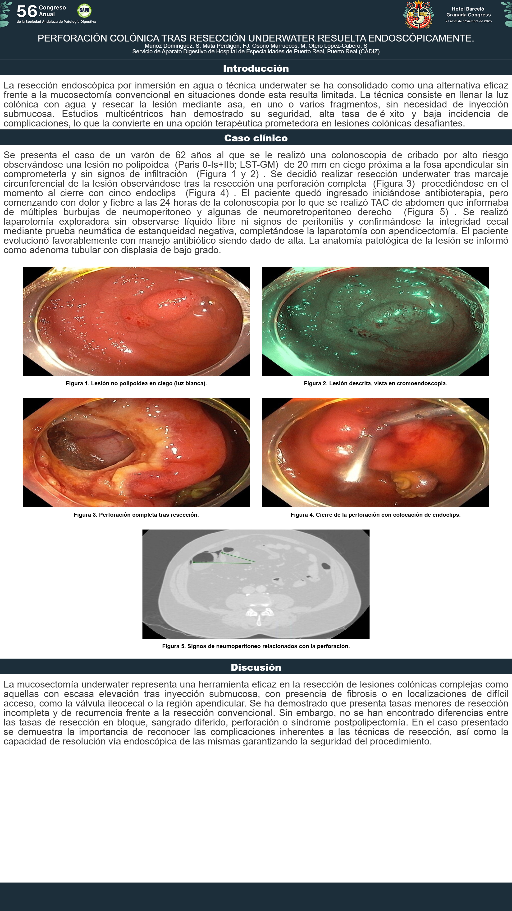 [CP-020] PERFORACIÓN COLÓNICA TRAS RESECCIÓN UNDERWATER RESUELTA ENDOSCÓPICAMENTE.
