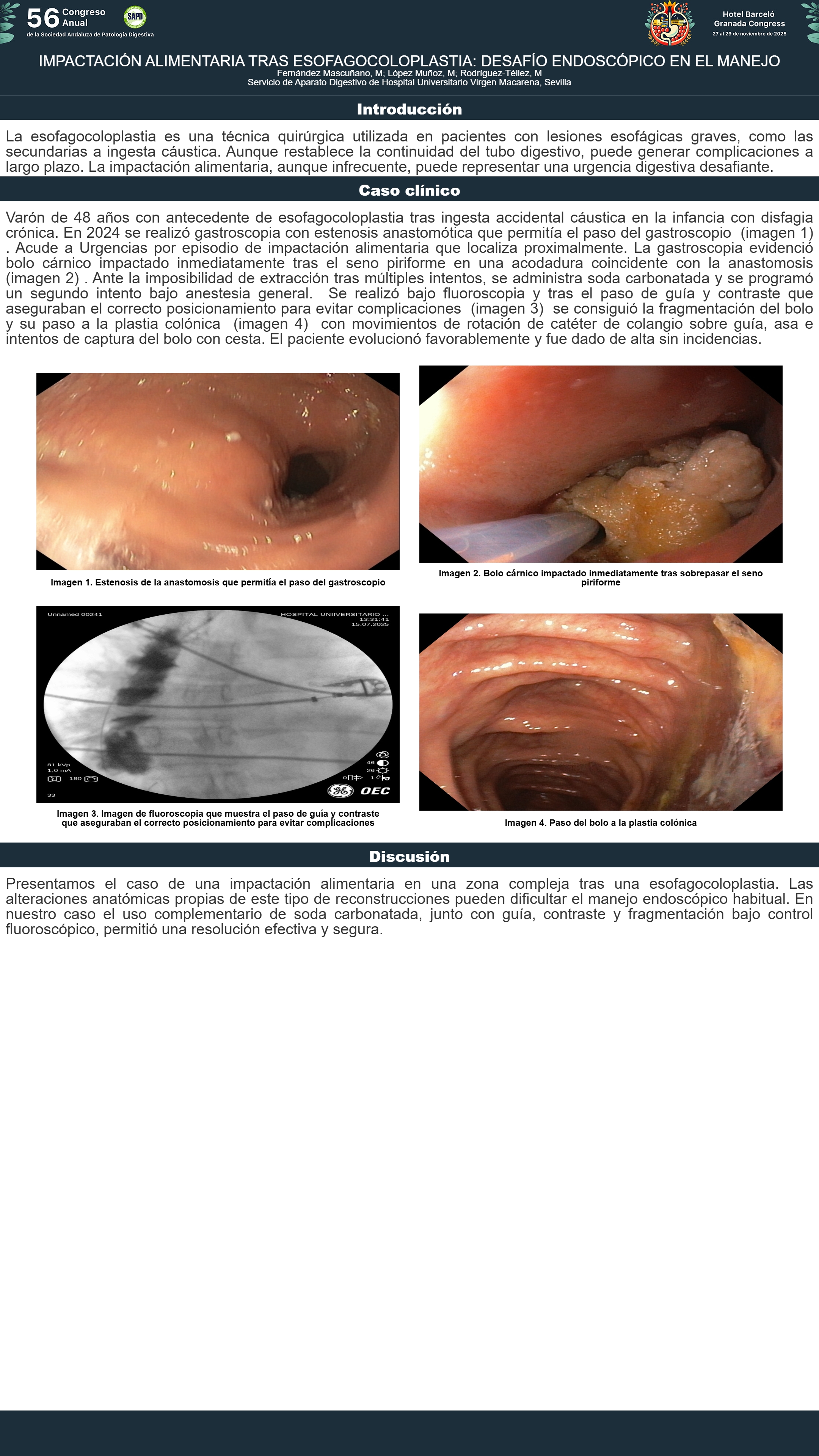 [CP-021] IMPACTACIÓN ALIMENTARIA TRAS ESOFAGOCOLOPLASTIA: DESAFÍO ENDOSCÓPICO EN EL MANEJO