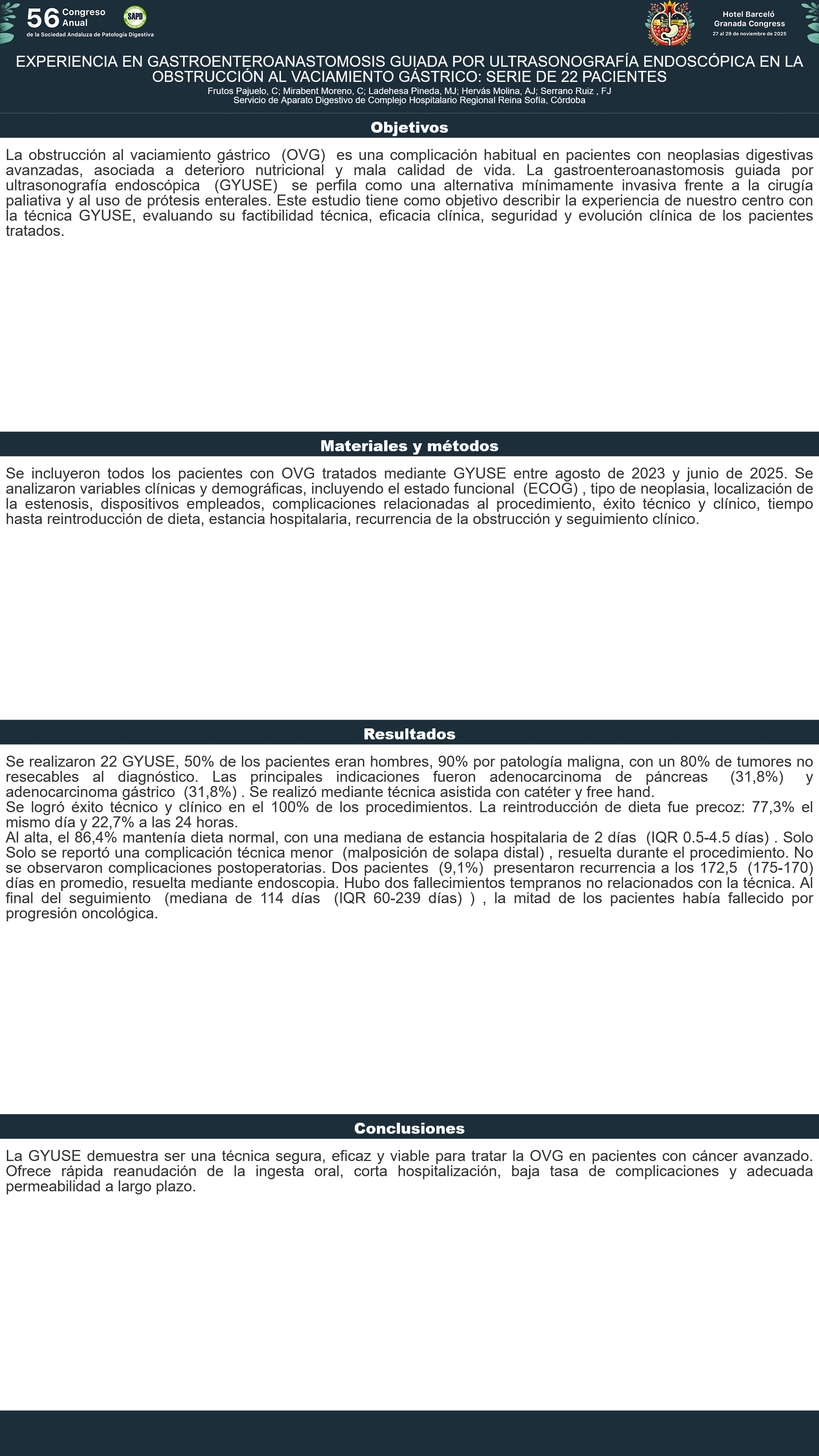 [CO-10] EXPERIENCIA EN GASTROENTEROANASTOMOSIS GUIADA POR ULTRASONOGRAFÍA ENDOSCÓPICA EN LA OBSTRUCCIÓN AL VACIAMIENTO GÁSTRICO: SERIE DE 22 PACIENTES