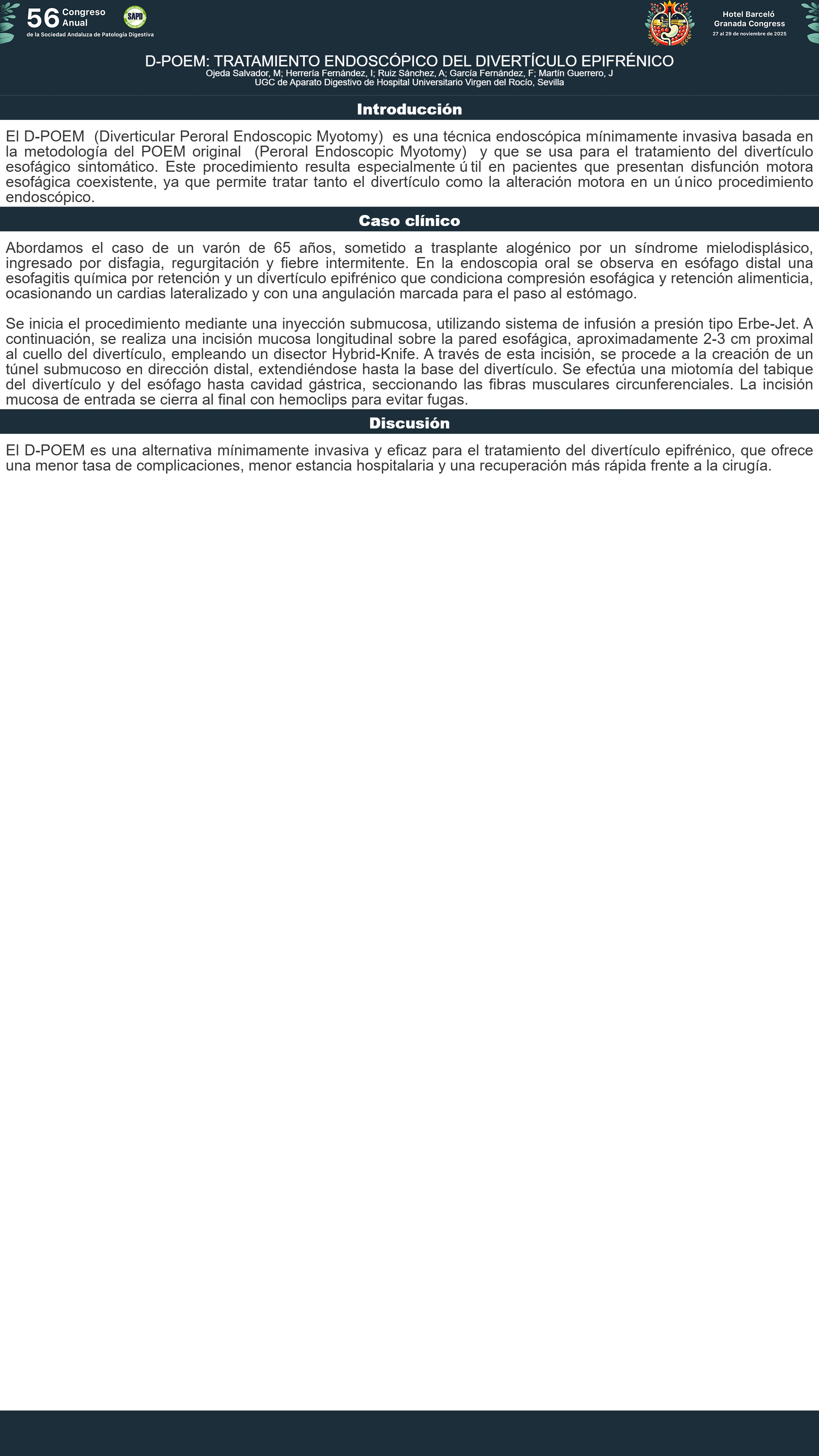 [VF-03] D-POEM: TRATAMIENTO ENDOSCÓPICO DEL DIVERTÍCULO EPIFRÉNICO