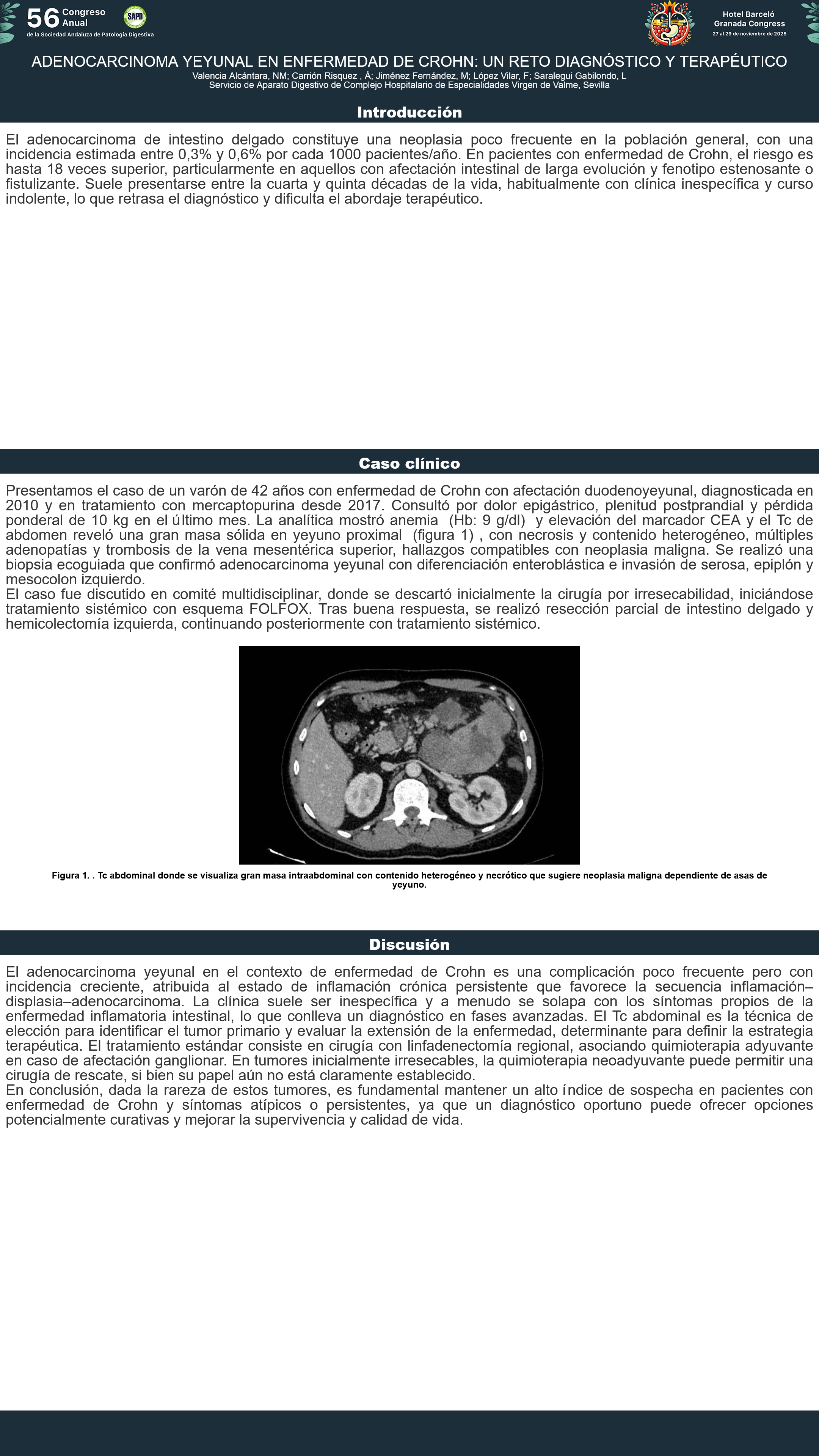 [CP-221] ADENOCARCINOMA YEYUNAL EN ENFERMEDAD DE CROHN: UN RETO DIAGNÓSTICO Y TERAPÉUTICO