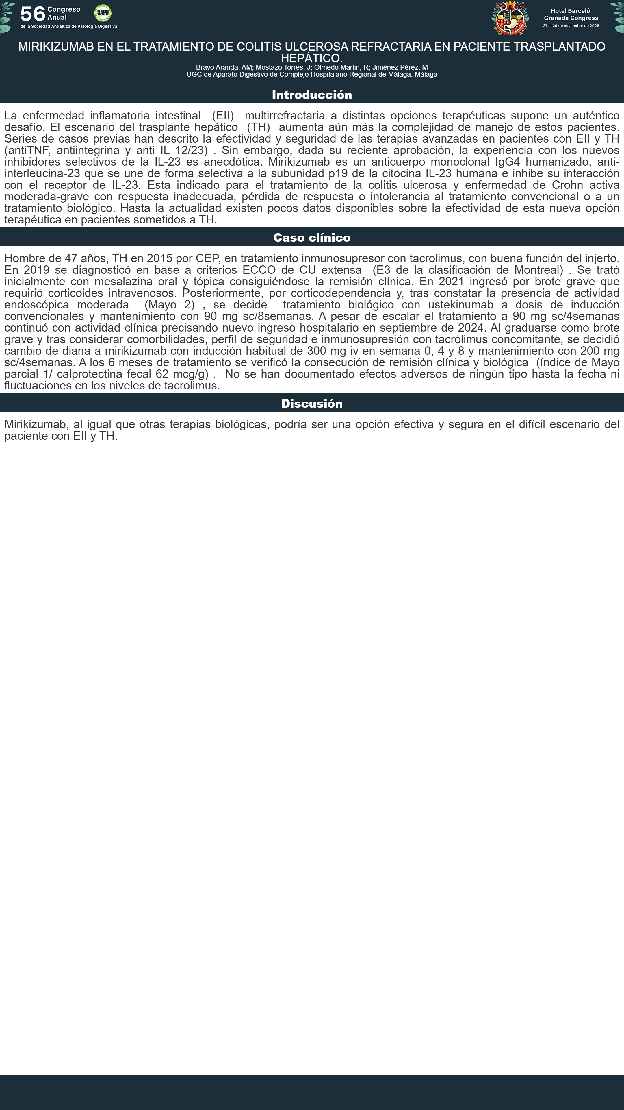 [CP-223] MIRIKIZUMAB EN EL TRATAMIENTO DE COLITIS ULCEROSA REFRACTARIA EN PACIENTE TRASPLANTADO HEPÁTICO.
