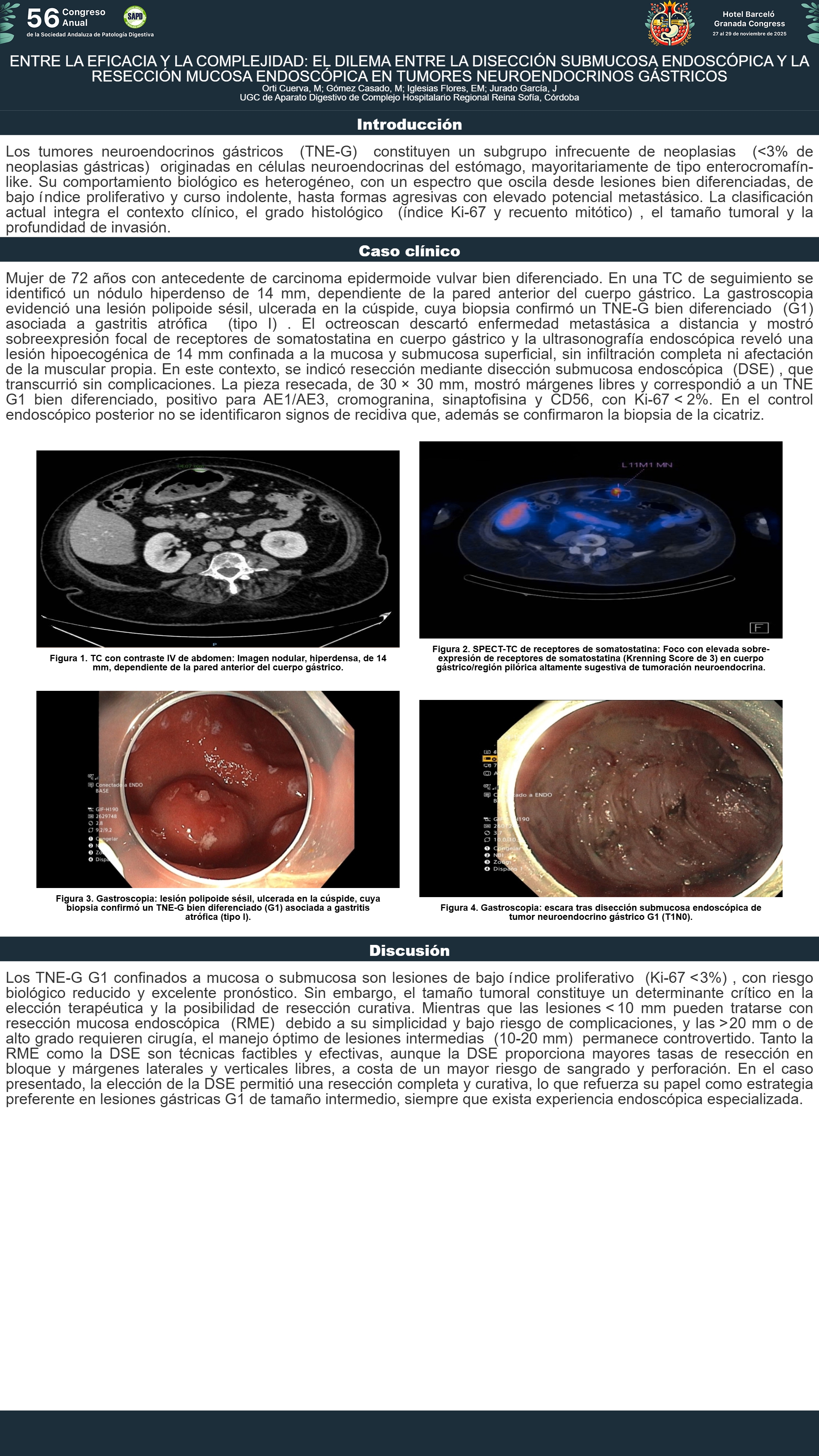 [CP-014] ENTRE LA EFICACIA Y LA COMPLEJIDAD: EL DILEMA ENTRE LA DISECCIÓN SUBMUCOSA ENDOSCÓPICA Y LA RESECCIÓN MUCOSA ENDOSCÓPICA EN TUMORES NEUROENDOCRINOS GÁSTRICOS