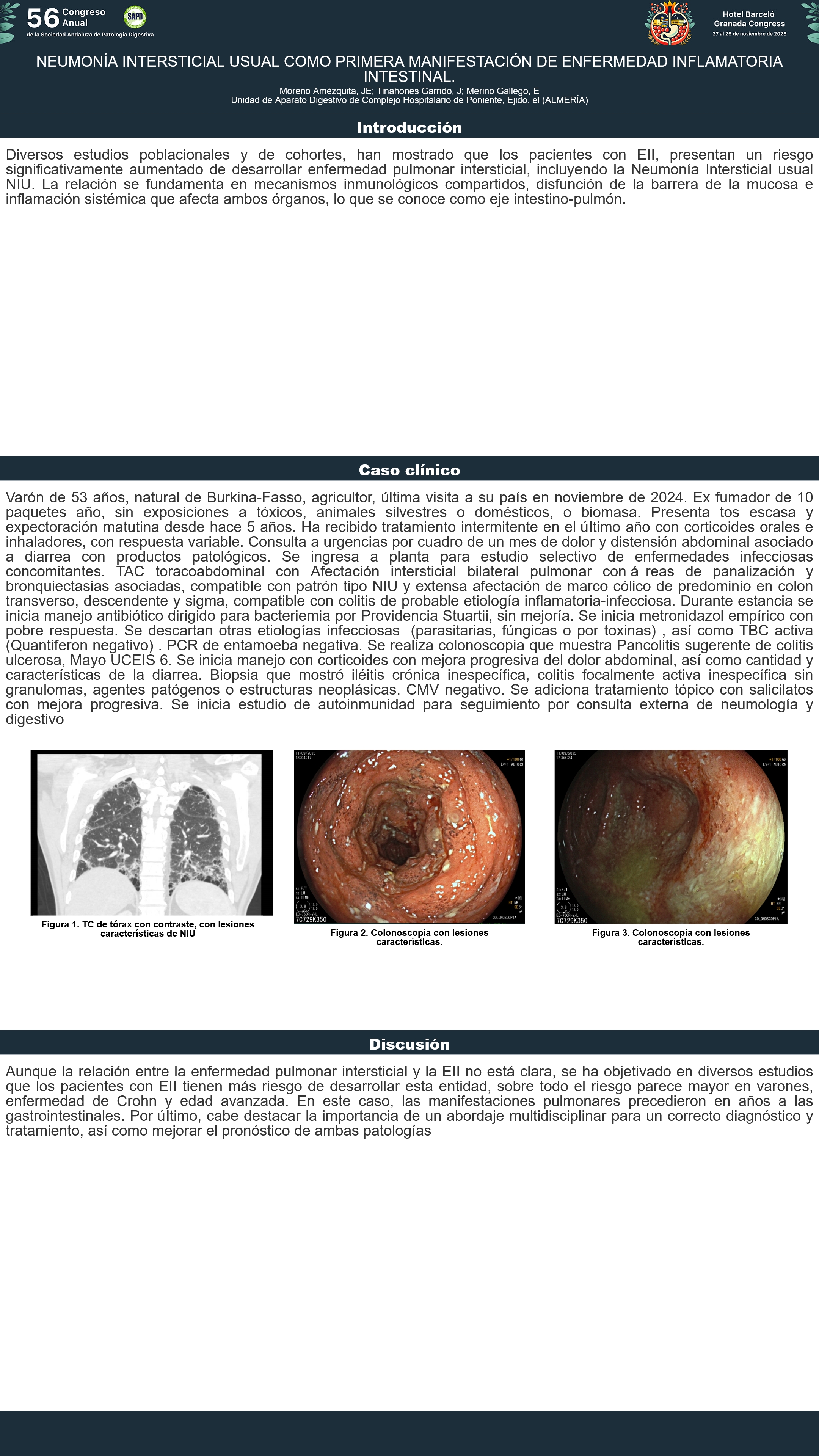 [CP-228] NEUMONÍA INTERSTICIAL USUAL COMO PRIMERA MANIFESTACIÓN DE ENFERMEDAD INFLAMATORIA INTESTINAL.