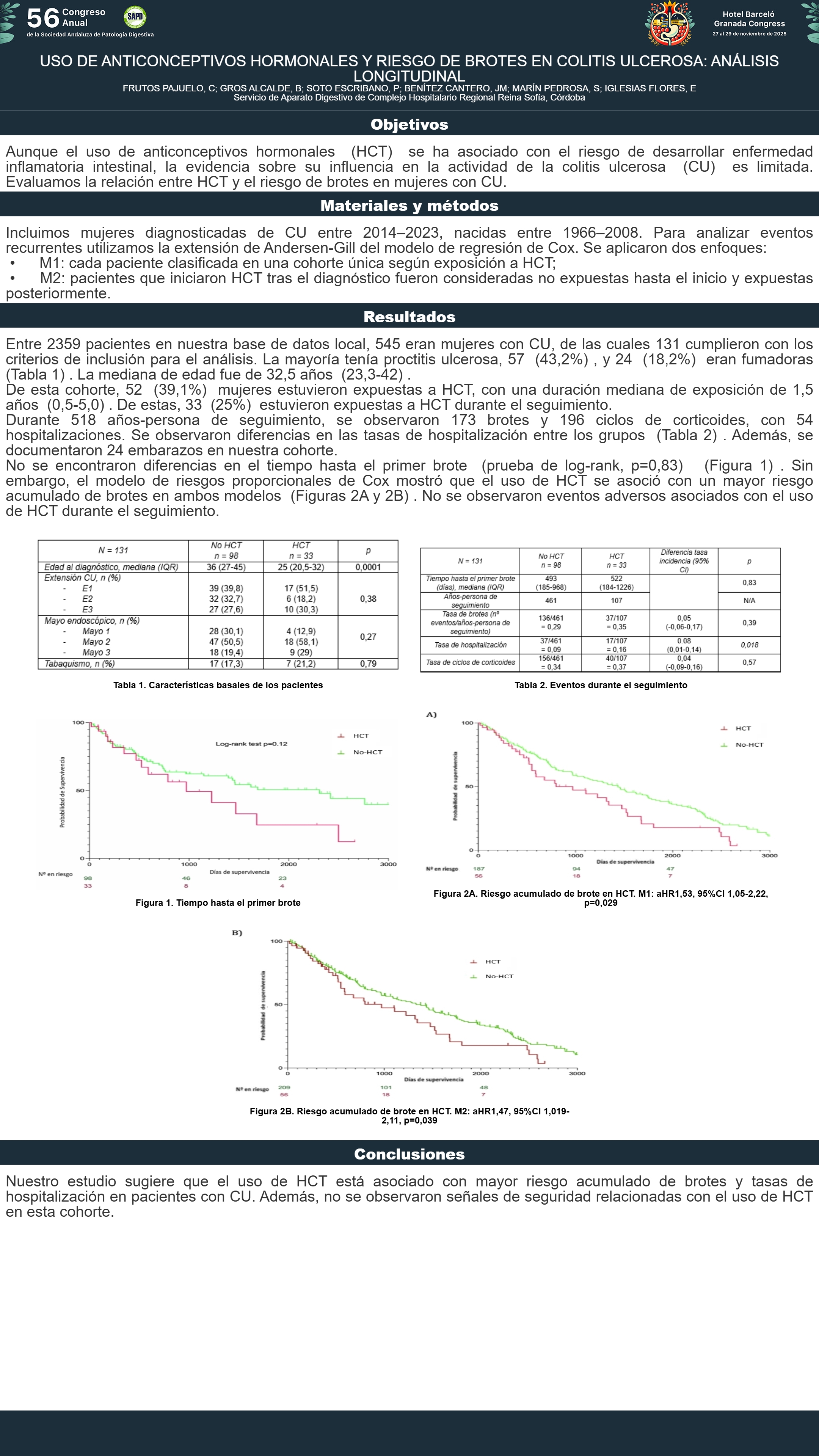 [CO-14] USO DE ANTICONCEPTIVOS HORMONALES Y RIESGO DE BROTES EN COLITIS ULCEROSA: ANÁLISIS LONGITUDINAL