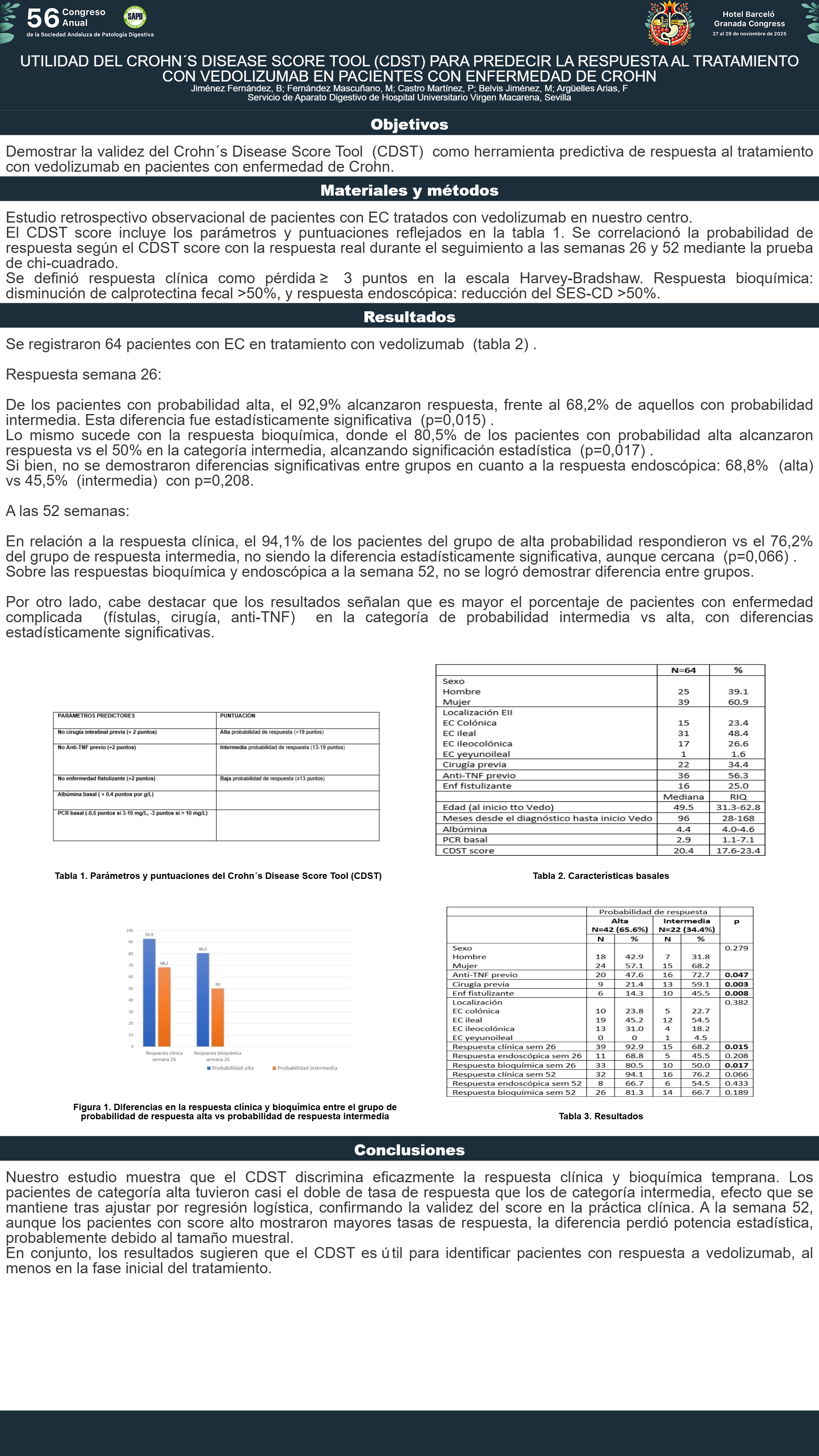 [CP-211] UTILIDAD DEL CROHN´S DISEASE SCORE TOOL (CDST) PARA PREDECIR LA RESPUESTA AL TRATAMIENTO CON VEDOLIZUMAB EN PACIENTES CON ENFERMEDAD DE CROHN