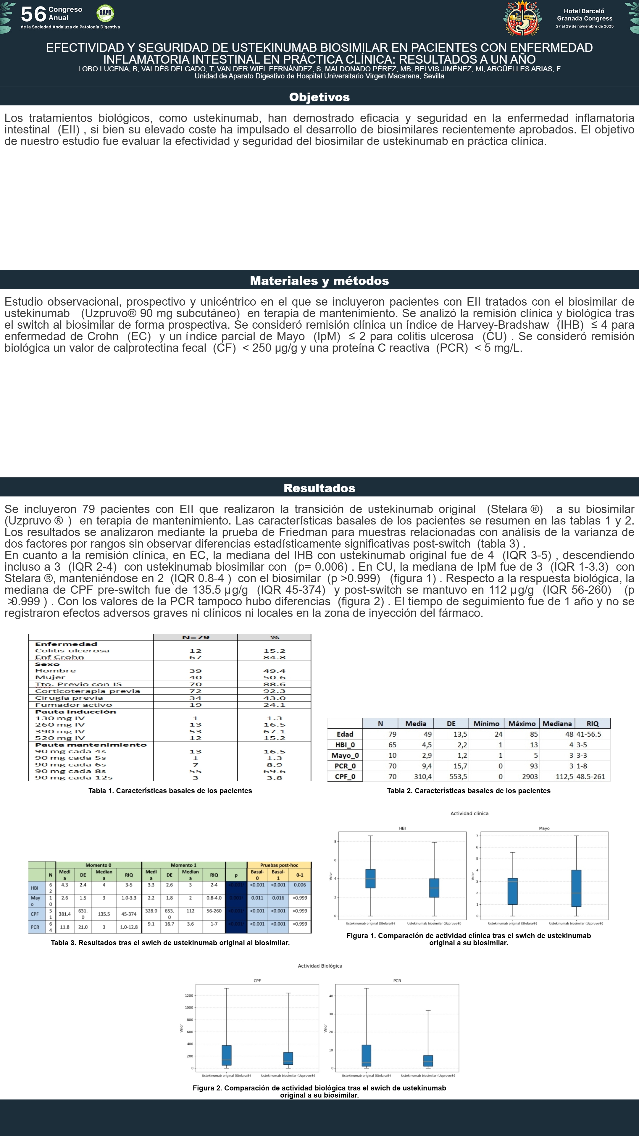 [CO-20] EFECTIVIDAD Y SEGURIDAD DE USTEKINUMAB BIOSIMILAR EN PACIENTES CON ENFERMEDAD INFLAMATORIA INTESTINAL EN PRÁCTICA CLÍNICA: RESULTADOS A UN AÑO