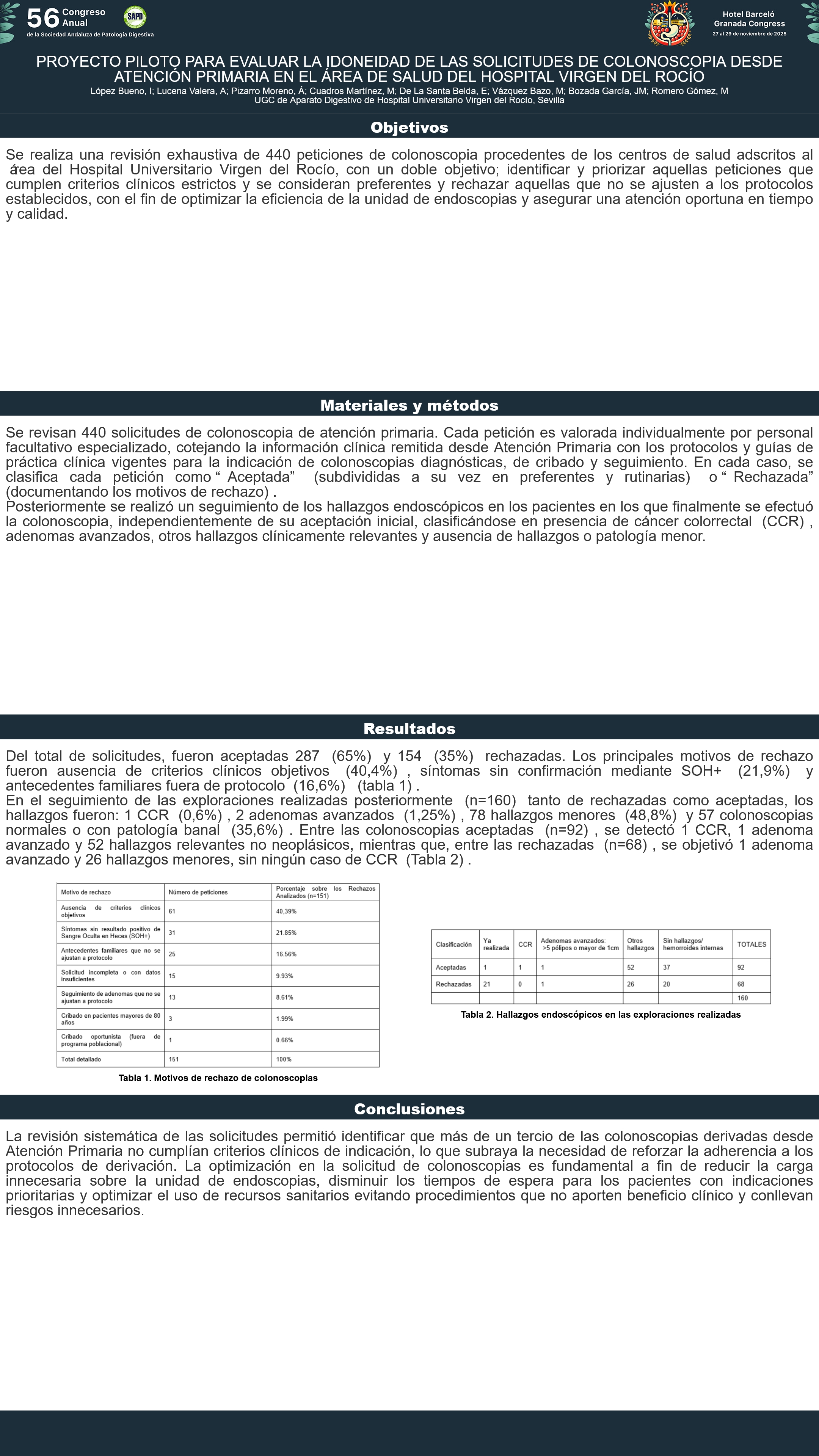 [CO-03] PROYECTO PILOTO PARA EVALUAR LA IDONEIDAD DE LAS SOLICITUDES DE COLONOSCOPIA DESDE ATENCIÓN PRIMARIA EN EL ÁREA DE SALUD DEL HOSPITAL VIRGEN DEL ROCÍO