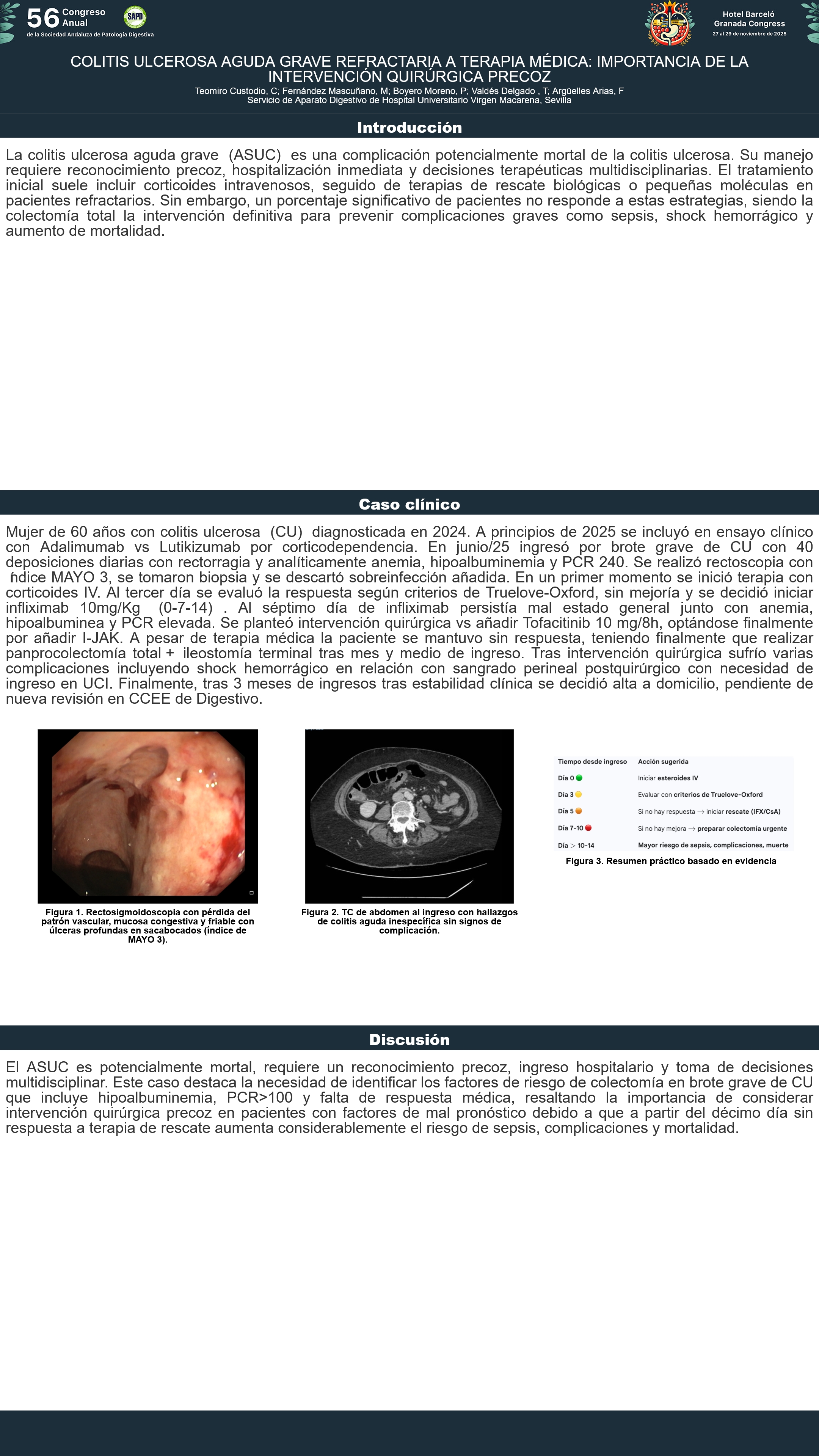 [CP-231] COLITIS ULCEROSA AGUDA GRAVE REFRACTARIA A TERAPIA MÉDICA: IMPORTANCIA DE LA INTERVENCIÓN QUIRÚRGICA PRECOZ