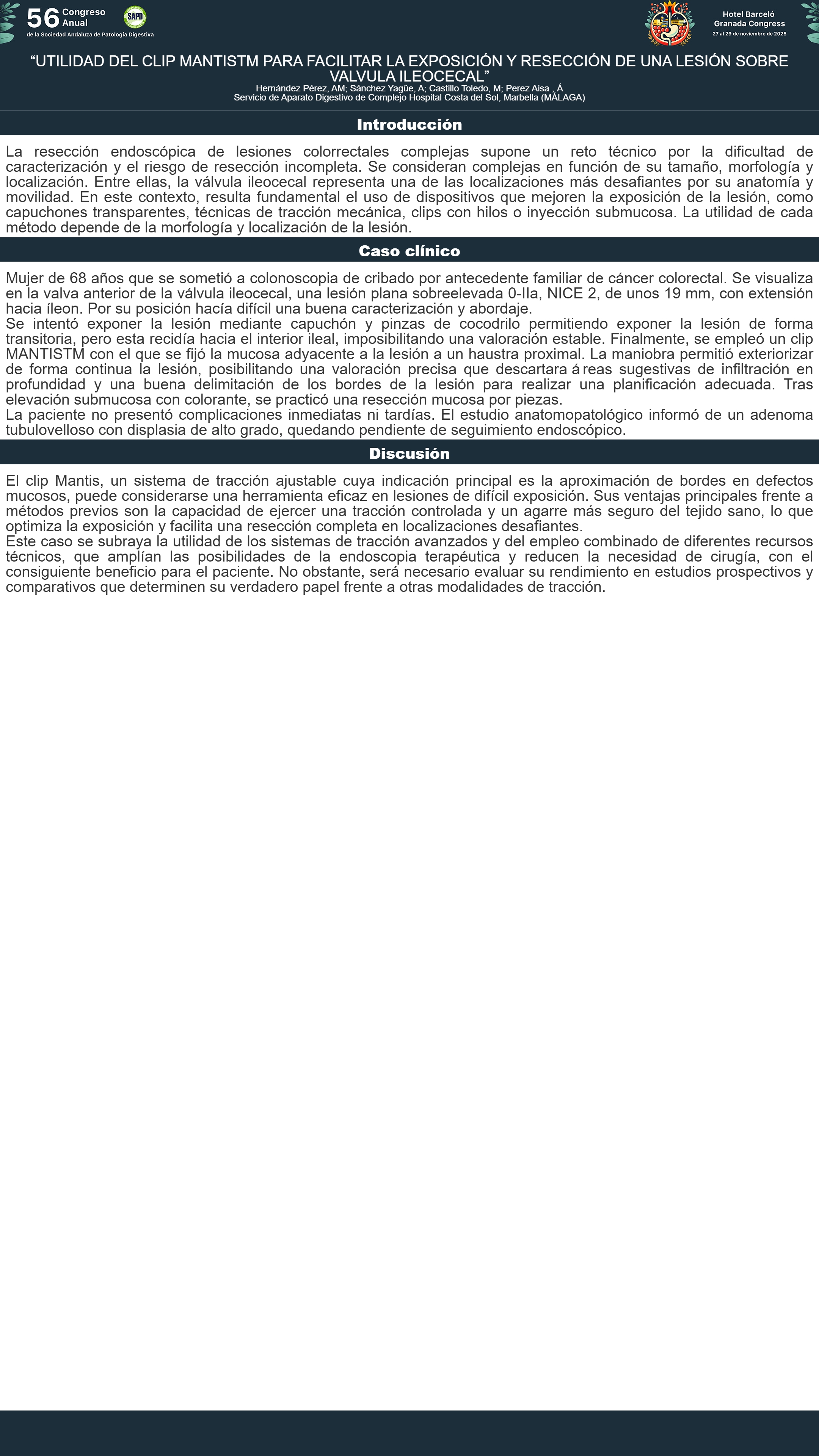 [VF-01] “UTILIDAD DEL CLIP MANTISTM PARA FACILITAR LA EXPOSICIÓN Y RESECCIÓN DE UNA LESIÓN SOBRE VALVULA ILEOCECAL”