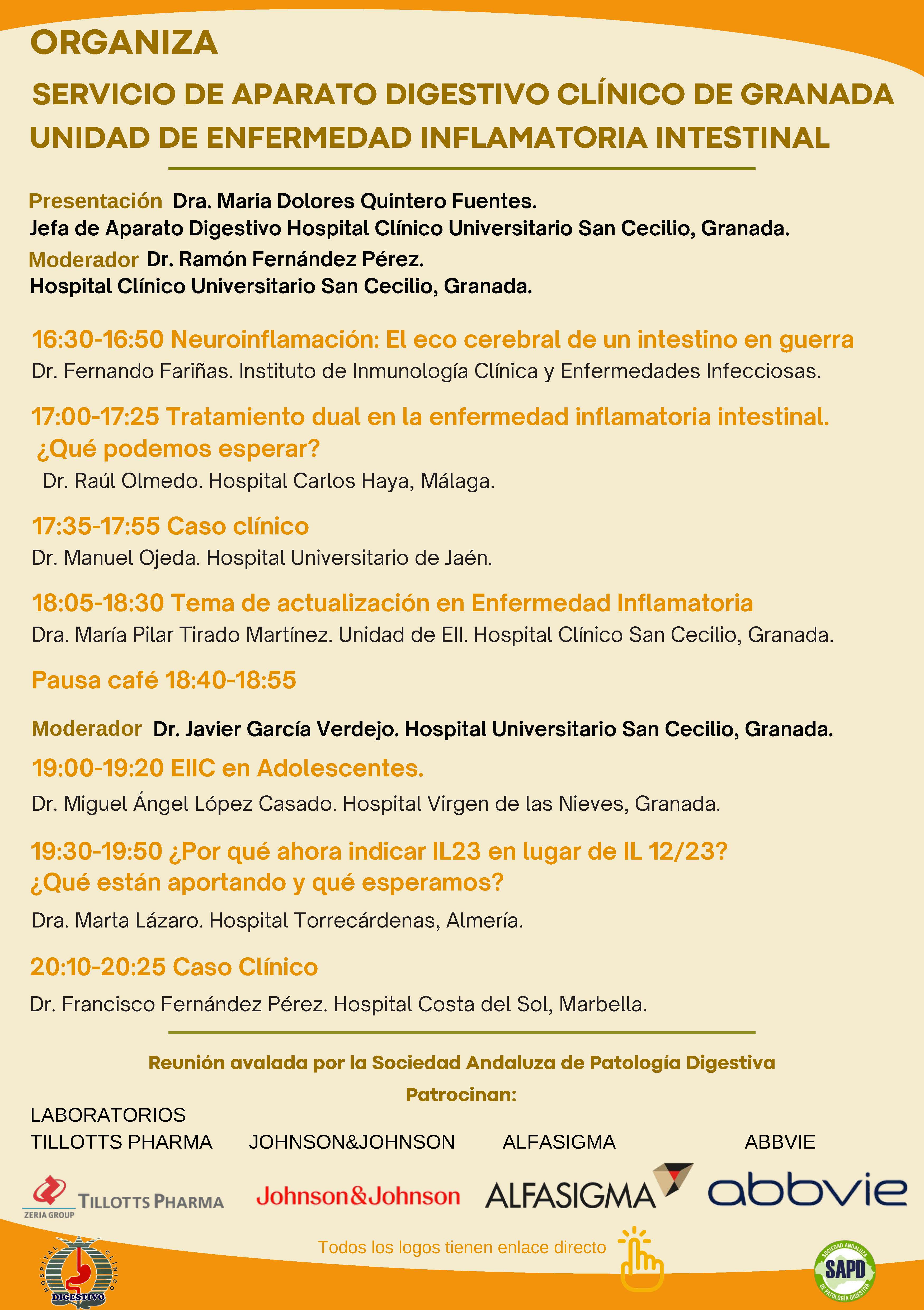 Se celebrará en el Hotel Elba el 19 de Junio de 2026, organizado por el servicio de aparato digestivo clínico de Granada unidad de Enfermedad Inflamatoria Intestinal.